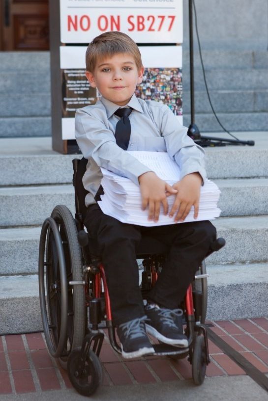 Otto tient les pétitions destinées au Gouverneur de Californie, et qui ont été récoltées pour lui permettre de fréquenter l’école.